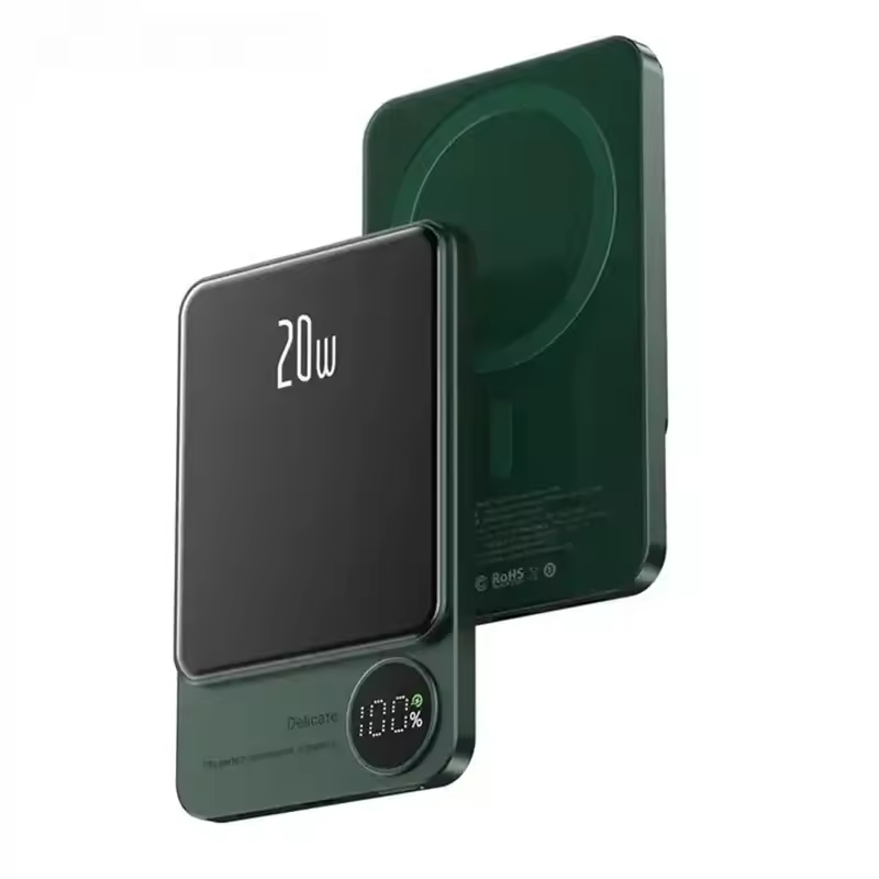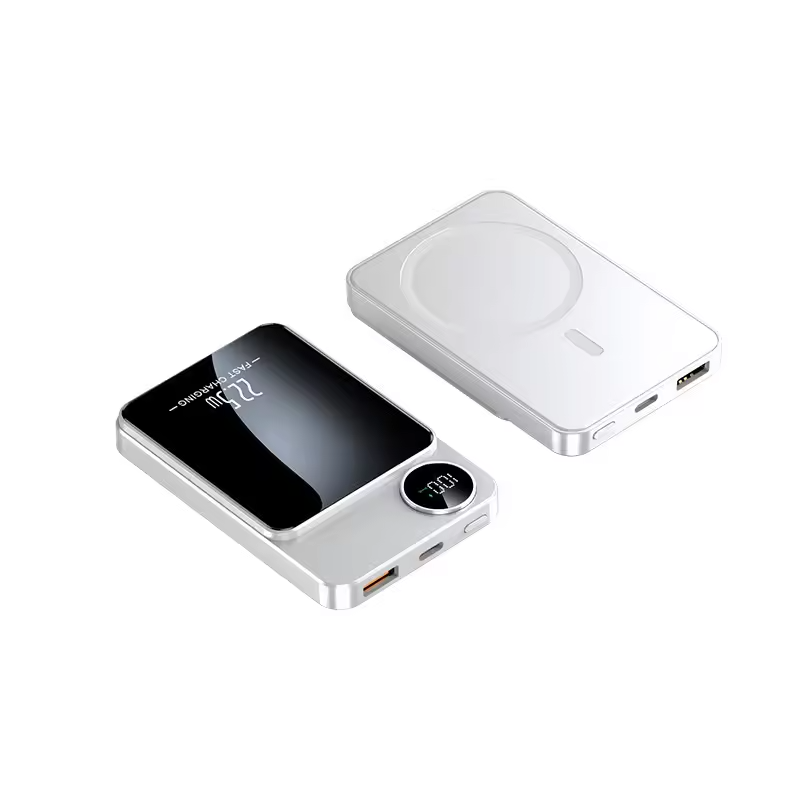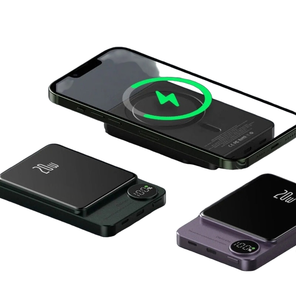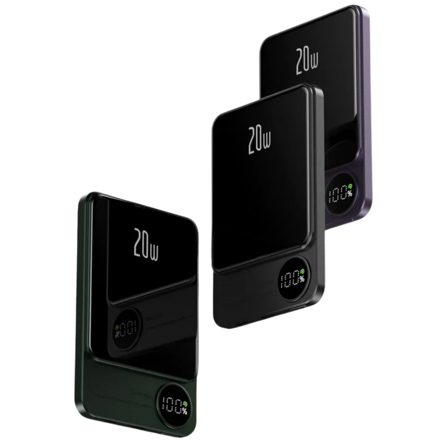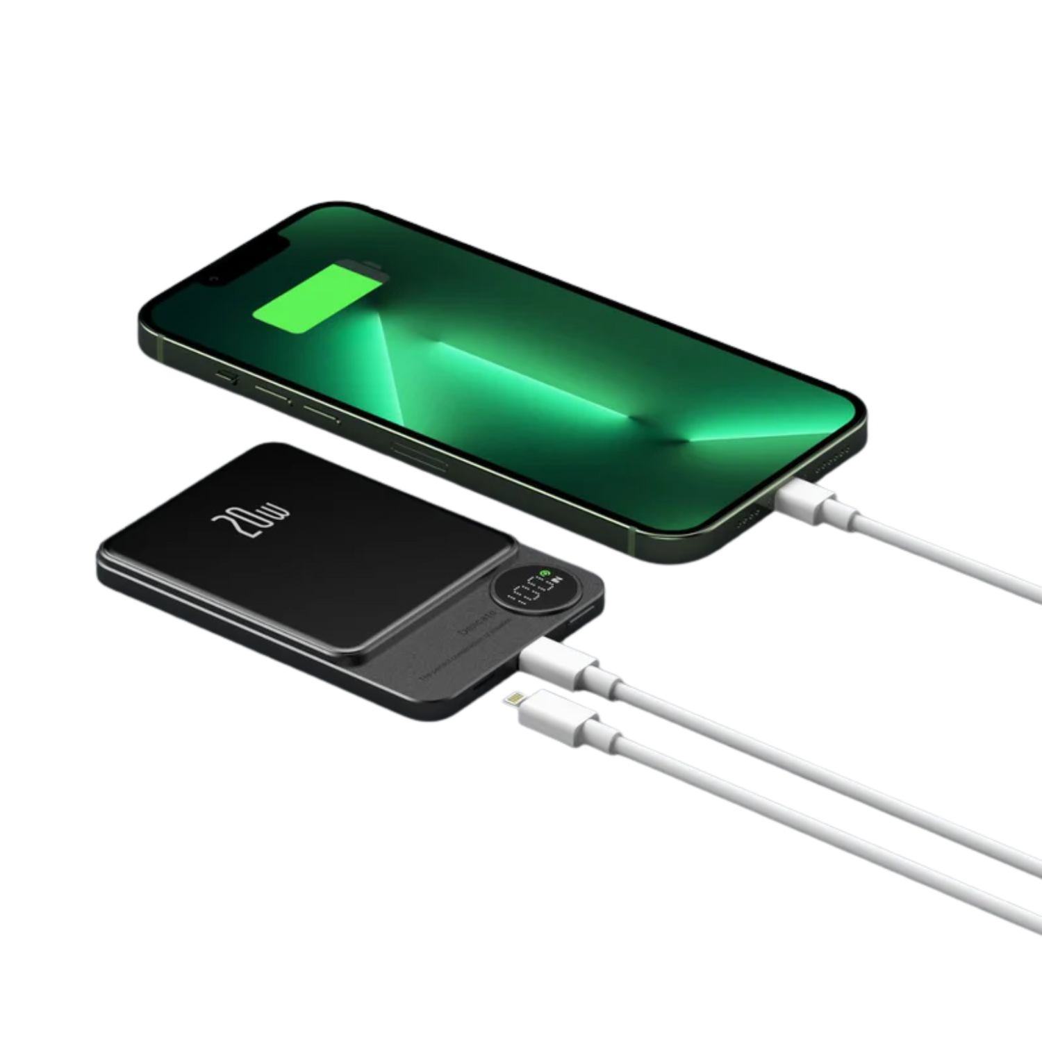 Denna kompakta, resevänliga powerbank finns i alternativ på 5 000 mAh och 10 000 mAh och är MagSafe-kompatibel, vilket gör att den kan fästas magnetiskt på din iPhone för säker trådlös laddning. Den har en smart LED-display som visar återstående batteritid och erbjuder flexibel laddning med både trådlösa (upp till 15 W) och trådbundna (upp till 20 W) alternativ via USB-C- och Lightning-portar. Du kan till och med ladda två enheter samtidigt, en trådlöst och en med kabel. Med ett inbyggt AI-chip för säkerhet och kylning är denna powerbank designad för bekväm och pålitlig användning var som helst.